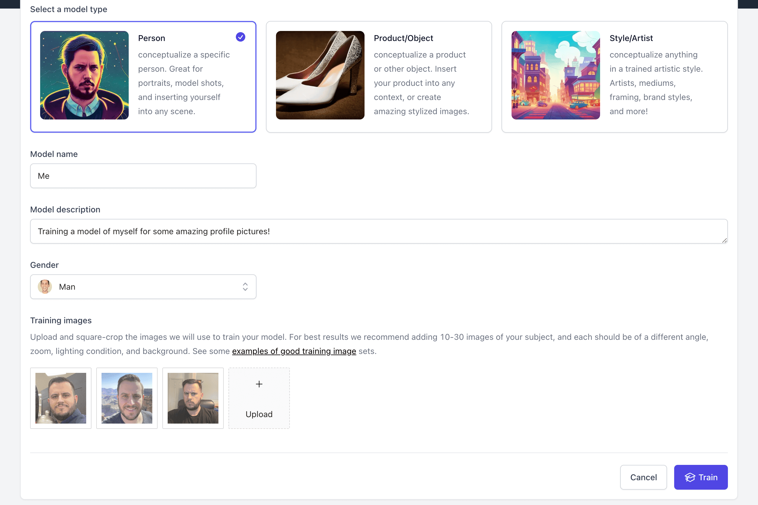 All you need to train your custom AI model is 10-30 random, boring pictures of your subject.